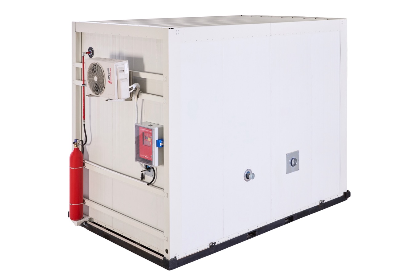 Depending on the product’s intended use and the materials to be stored, FM200, Aerosol, or AFFF type fire suppression systems can be integrated.